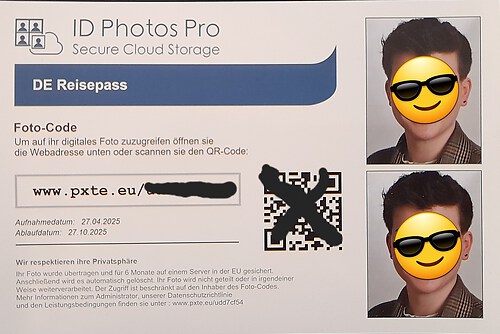 Was ist neu ab Mai: Ihre Passbild-Datei wird direkt auf eine geschützte Cloud hinterlegt, für die Sie einen QR-Code erhalten. Mit diesem gehen Sie auf die Behörde, die sich die Datei bequem downloaden kann. Nach 6 Monaten werden die Daten von der Cloud gelöscht.